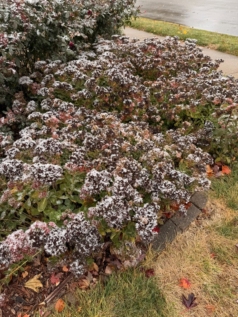 Oh… and I almost forgot! On Sunday we had our first snow of the season! It didn’t last, but I took a photo of the snow on some shrubs while I was out for a walk.