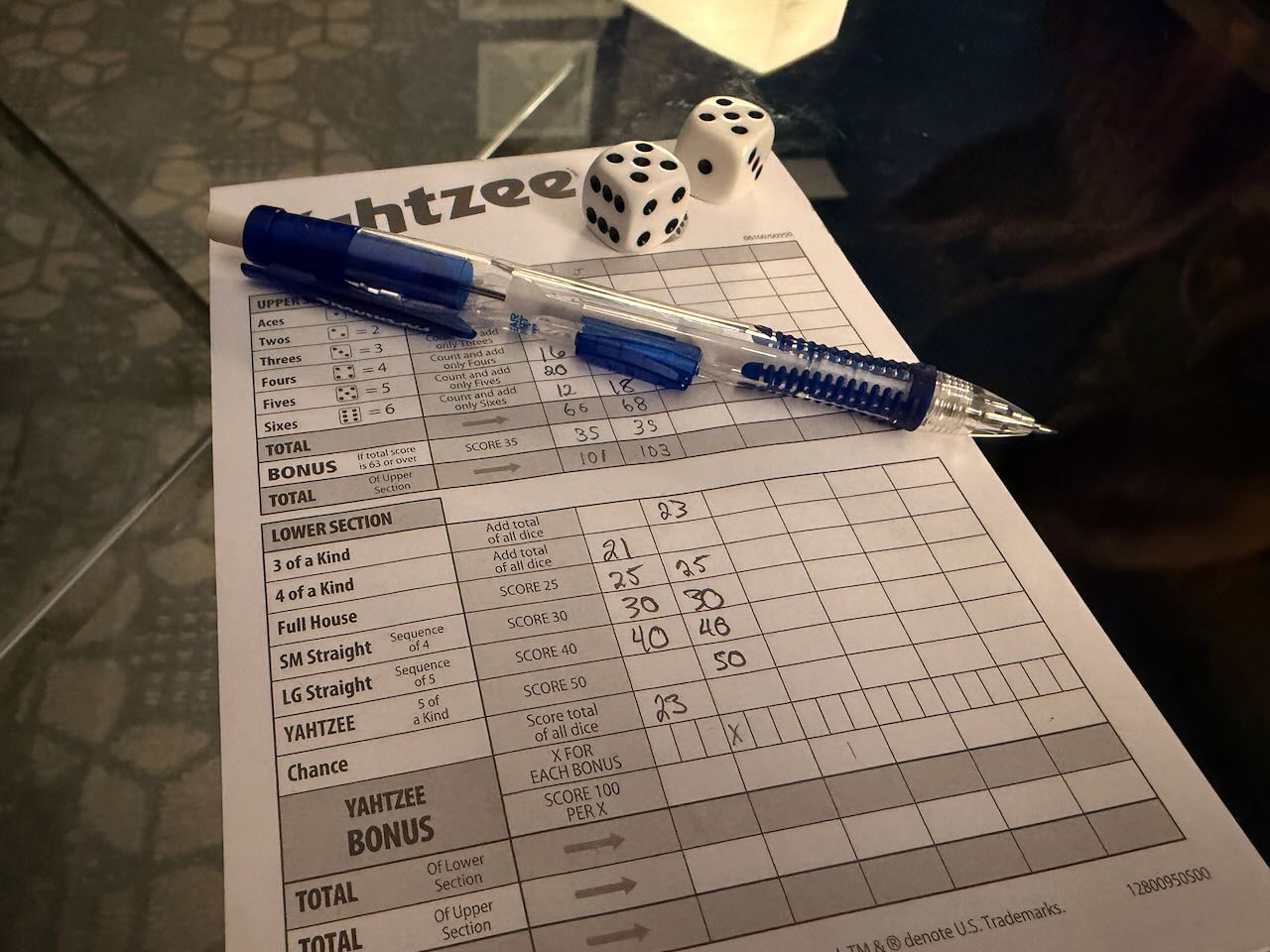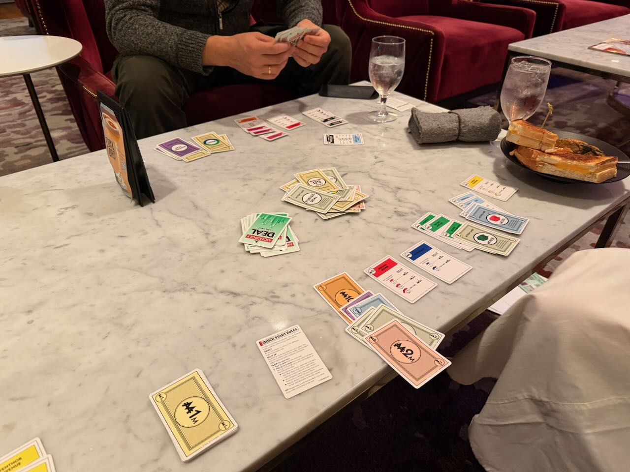 Friday evening saw the return of game nights the aforementioned M, who once again traveled with her mom to the area on business. This time there was a slightly larger group, and we ended up playing Monopoly Deal (a continued favorite), 5 Minute Dungeon, Yahtzee (which I won!), and Bananagrams.
