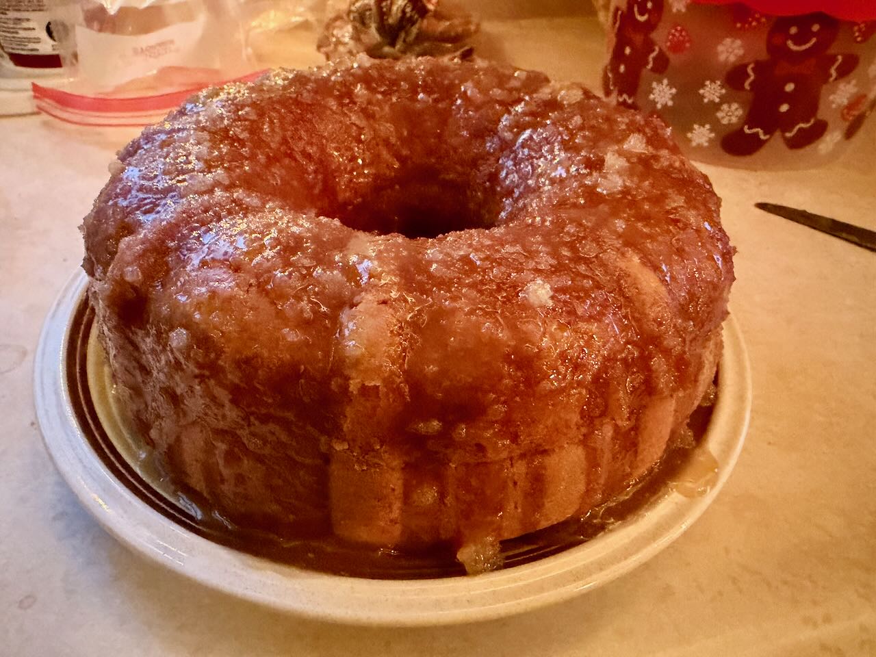 Thursday afternoon my sister and I made rum cake, which turned out surprisingly well. My dad even enjoyed it, and he’s normally not a cake person!