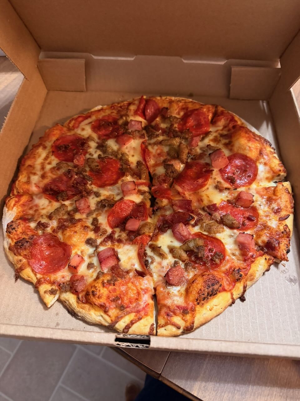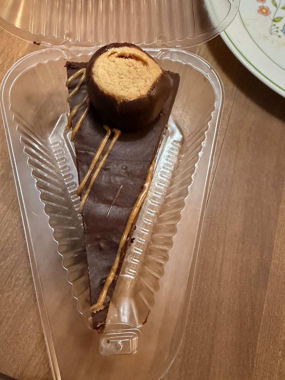 Saturday evening we’d planned to go out for dinner, but my mom wasn’t feeling well, so we ended up ordering in instead. I got pizza, and for dessert, Buckeye Cheesecake 😋